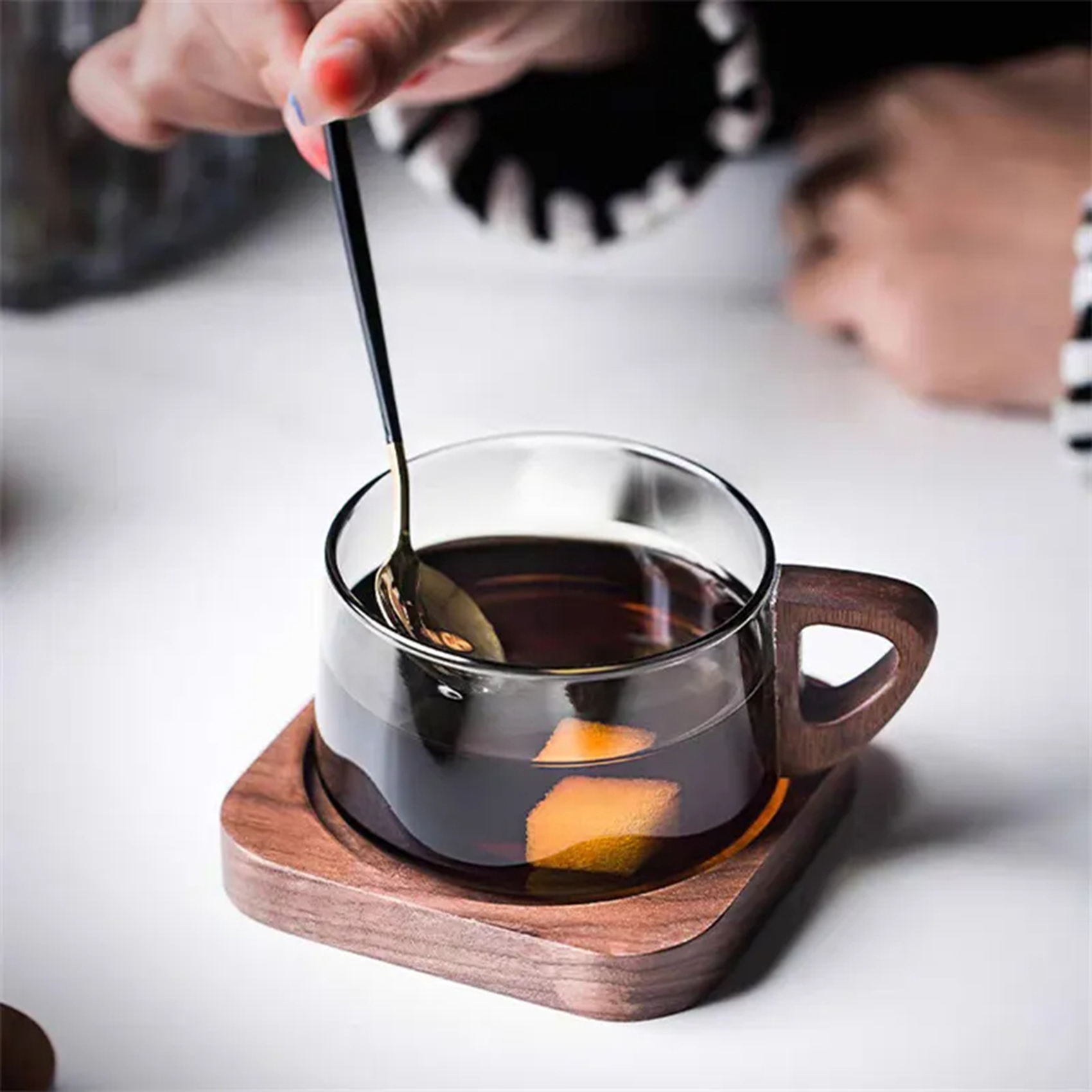 200ml Glass American Latte Coffee Cup with Wooden Tray – Heat-Resistant Luxury Coffee Mug
