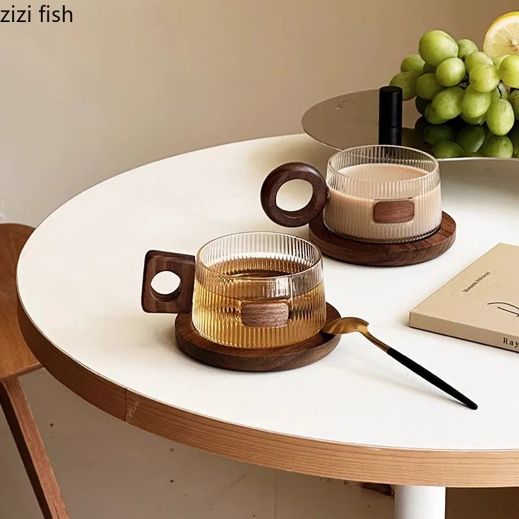 📌 Color: Transparent Glass + Wooden Handle & Coaster