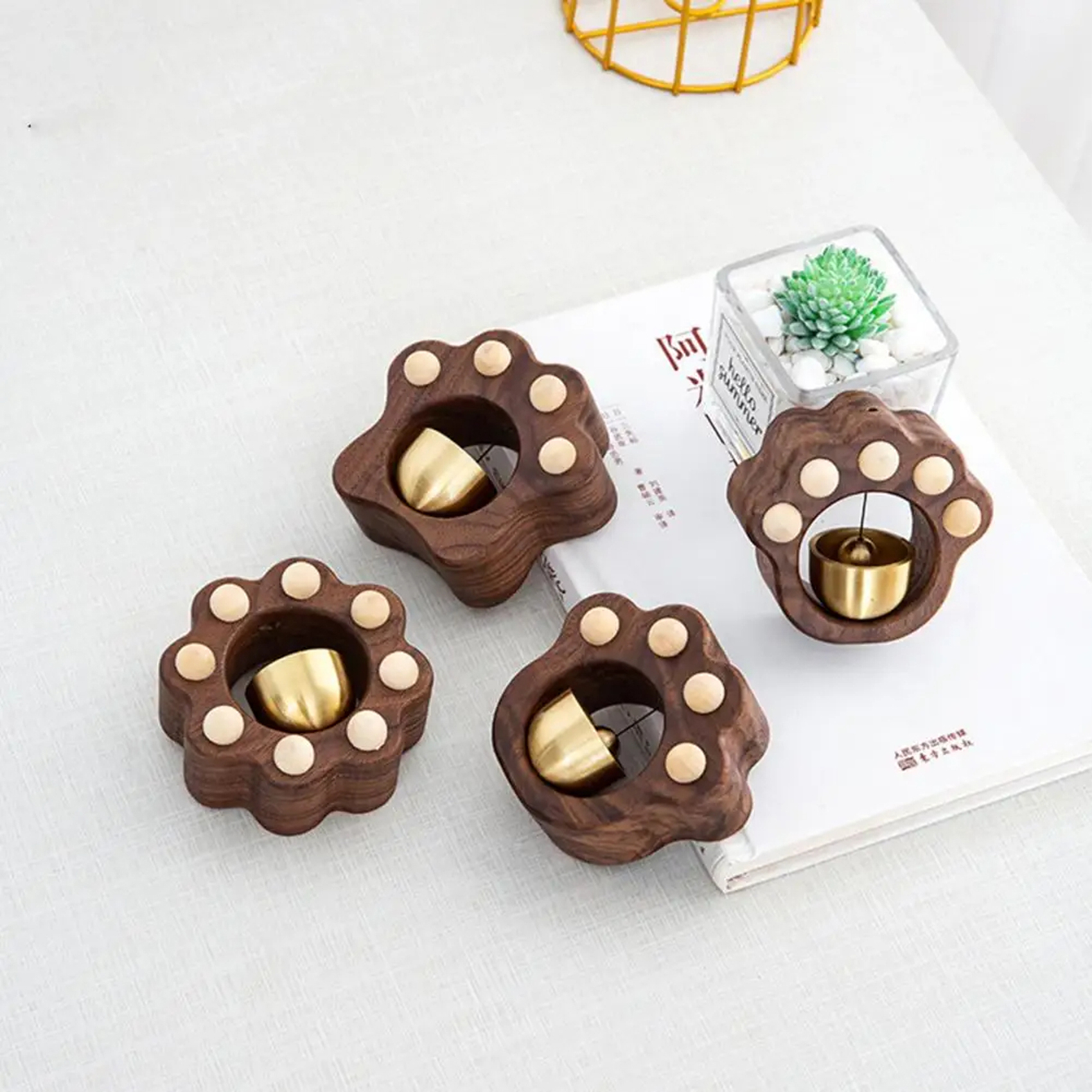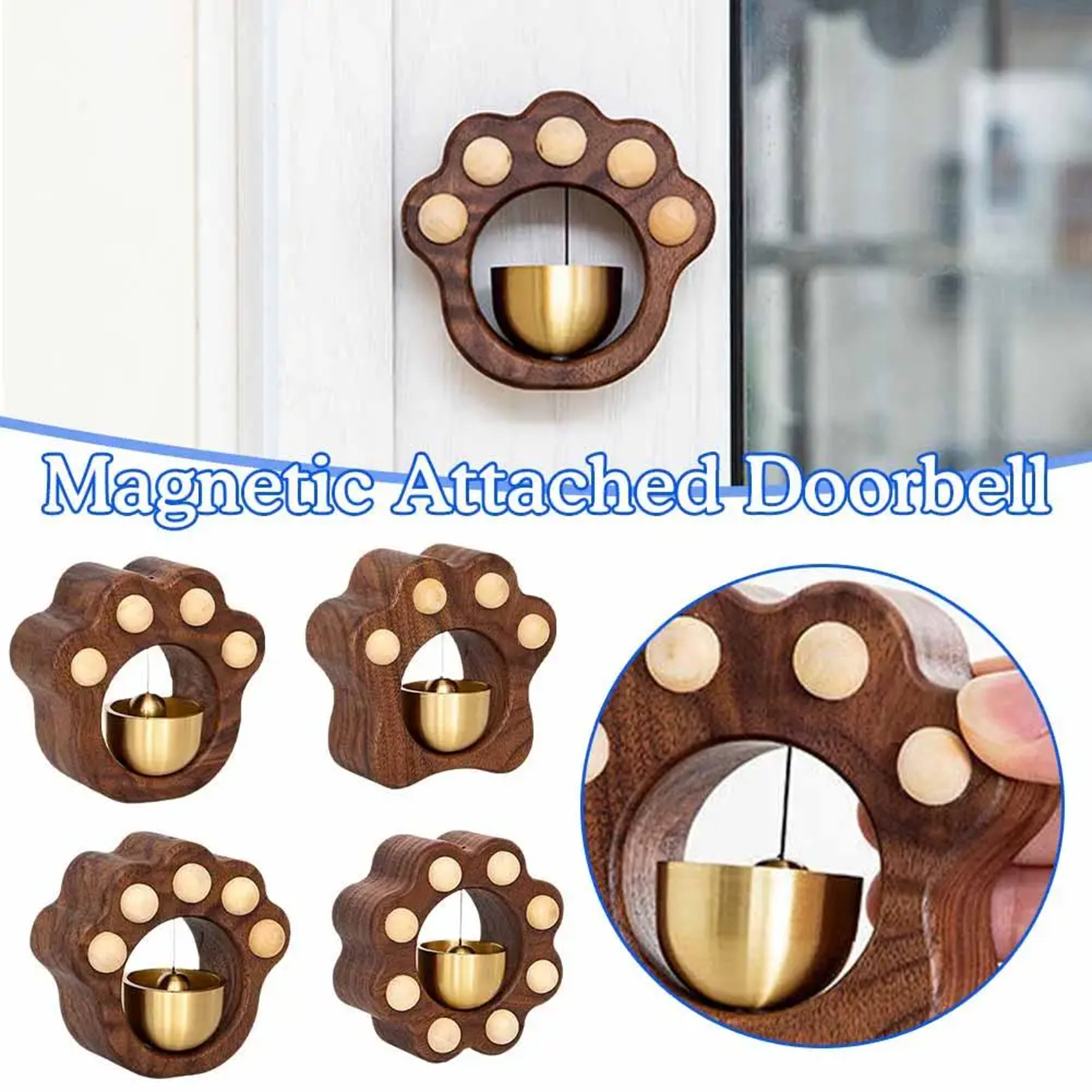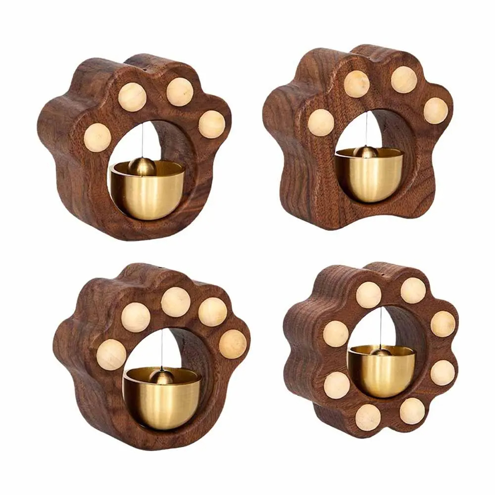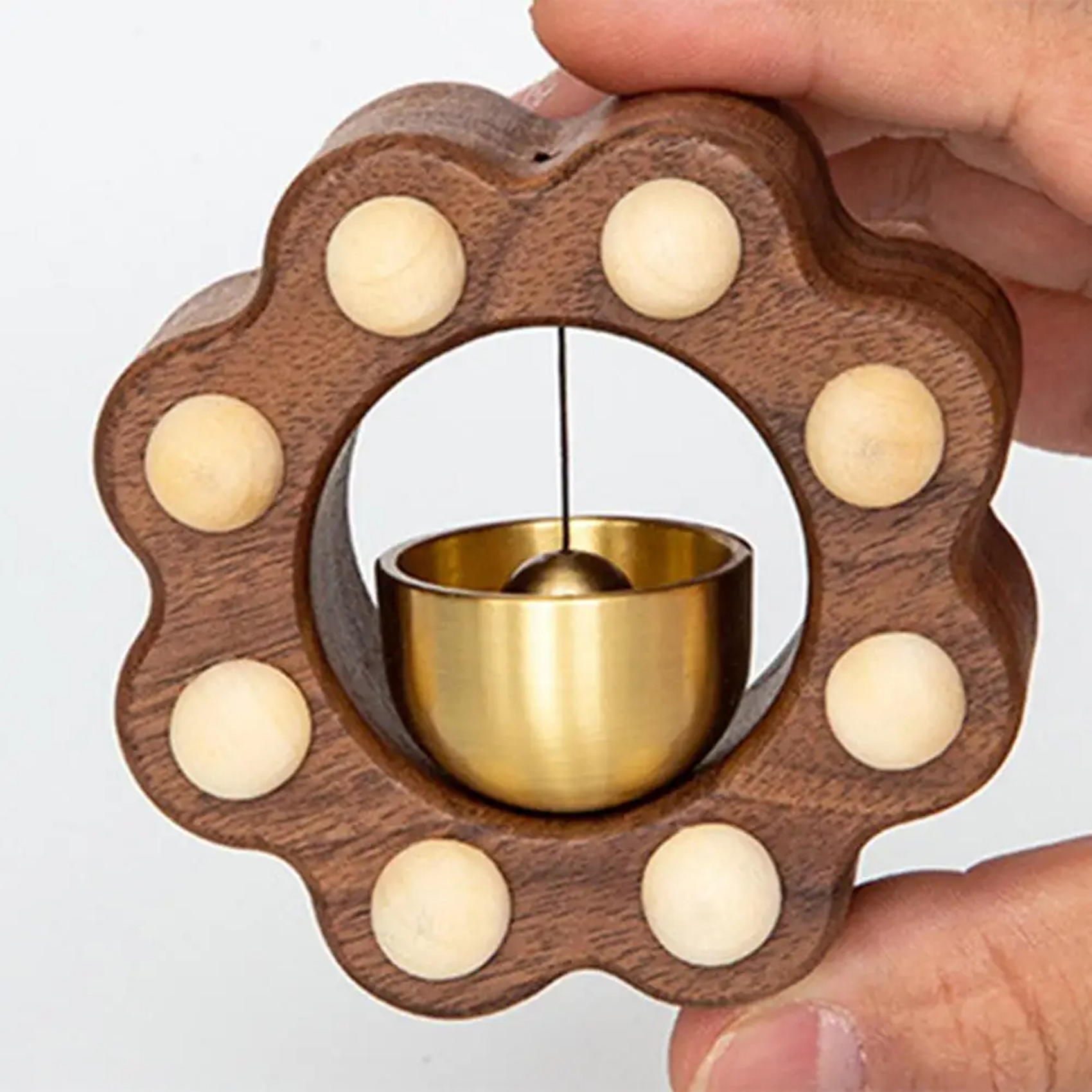 Kawaii Cat Paw Wood Doorbell – Melodious Wind Chime for Doors & Rooms | Handmade Walnut & Brass Shopkeeper Bell