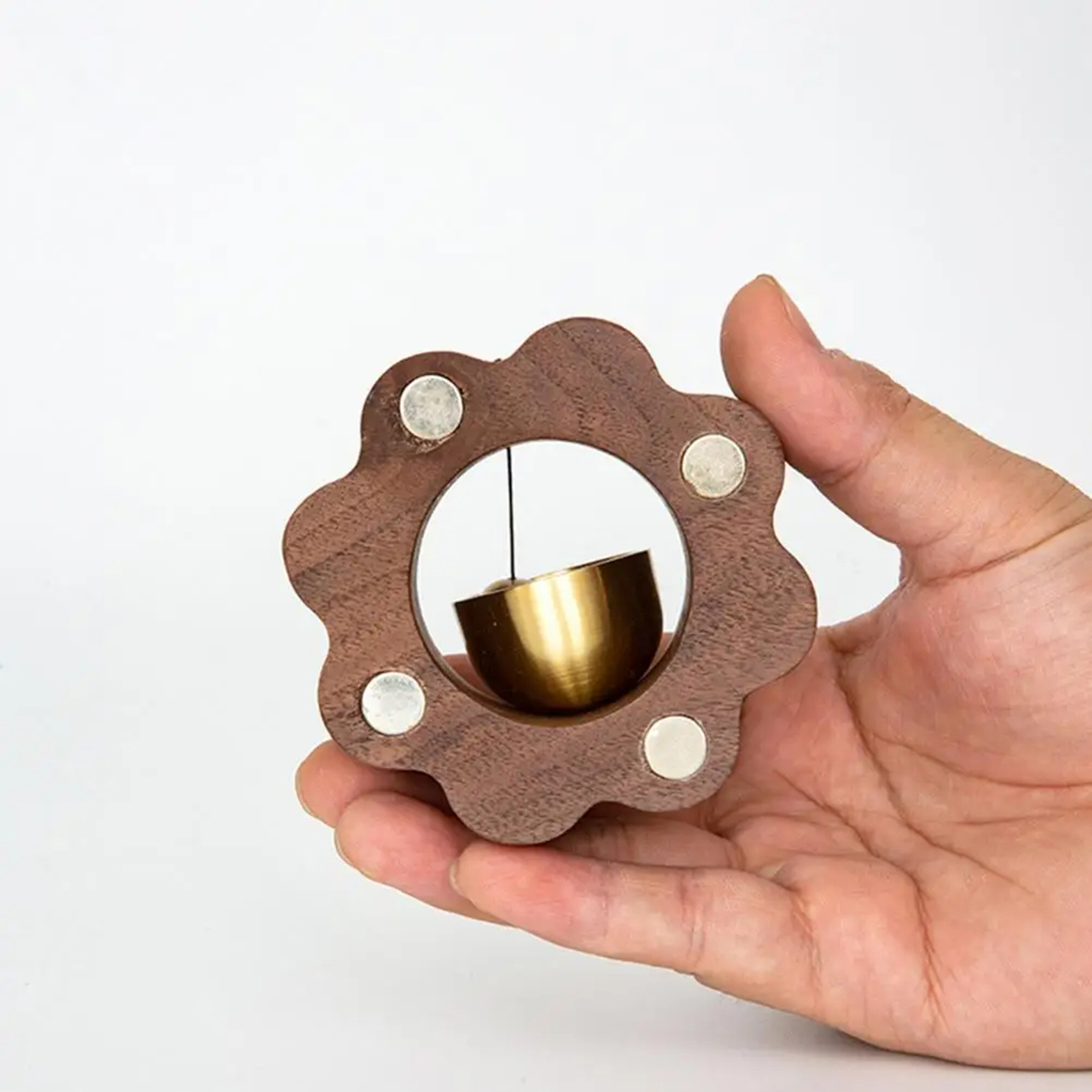 Add a touch of charm and warmth to your entrance with the NADEnVIE Kawaii Cat Paw Doorbell, a beautifully crafted walnut and brass chime designed to produce a gentle, melodious ring when the door opens. Featuring a cute cat paw shape, this retro-style doorbell is perfect for homes, offices, coffee shops, and boutiques.